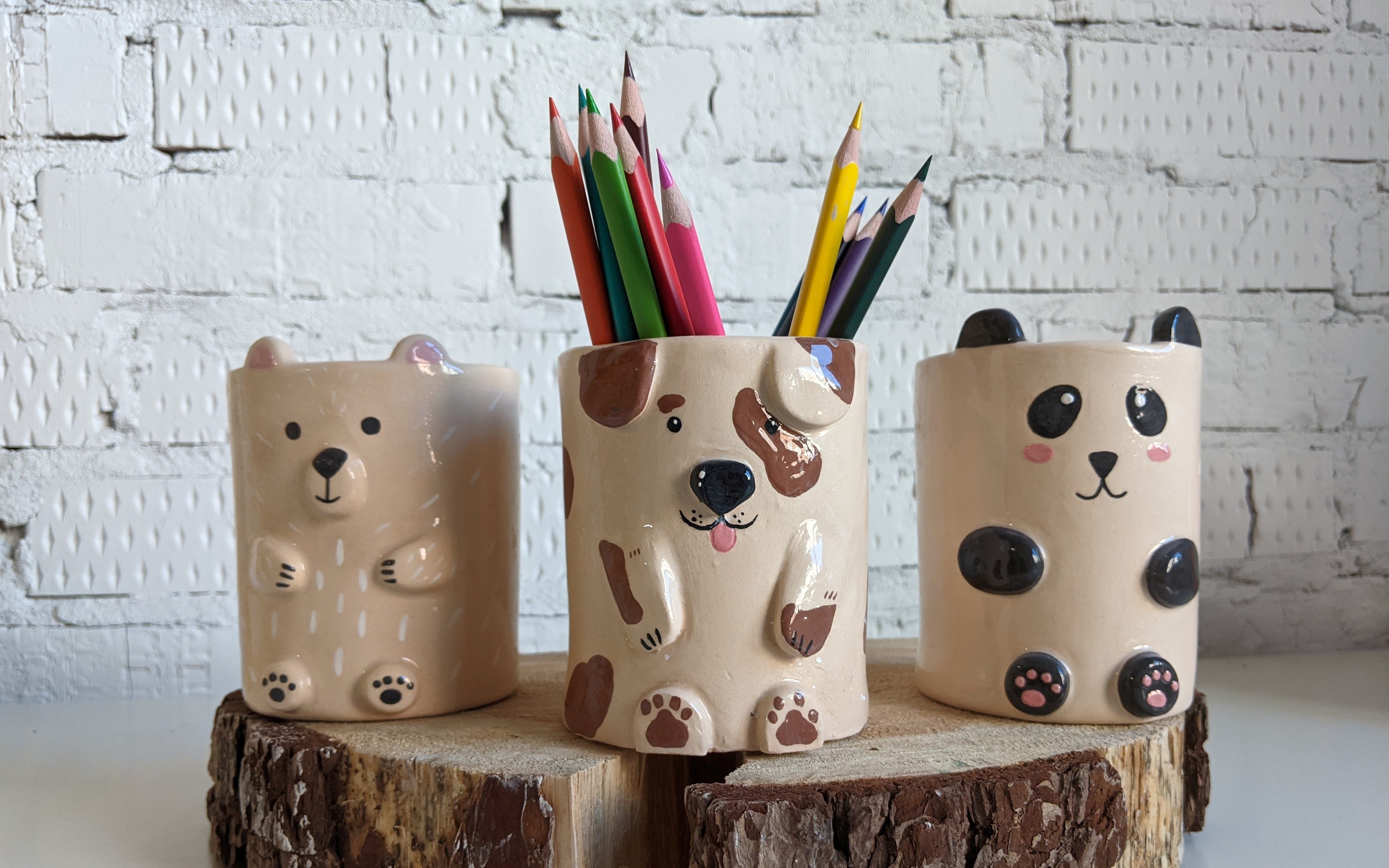 Подставка для карандашей, ручек, фломастеров и прочего в виде милых зверушек украсит любой рабочий стол