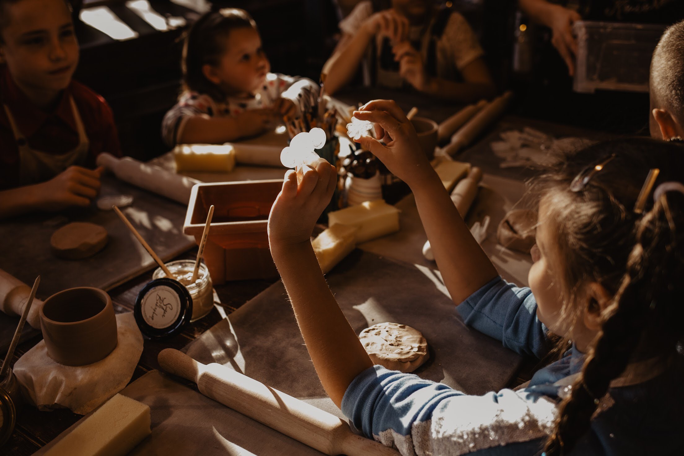 Вот уж не знаем, кто звенит громче на занятиях - колокольчики или детский смех! Пожалуй, смех. Каждый детский мастер-класс - это море радости и впечатлений, потому что глина намного волшебнее, чем пластилин. Она одного цвета, похожа на тесто или землю (так маленькие творцы говорят) и надо запомнить кучу маленьких движений, чтобы все получилось!