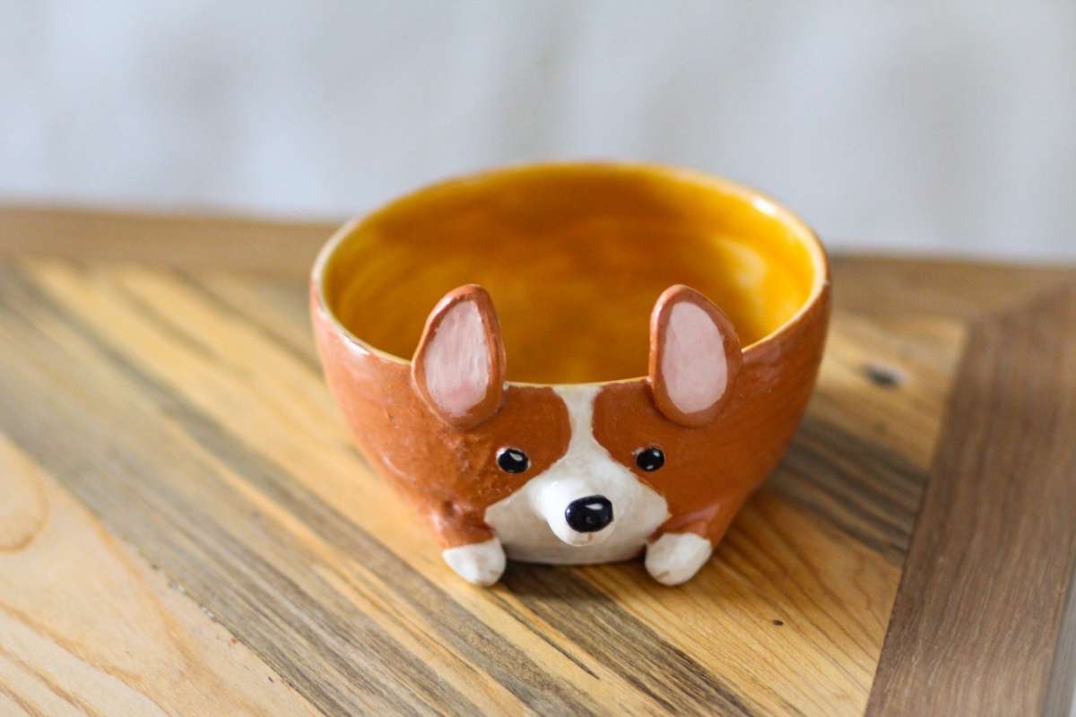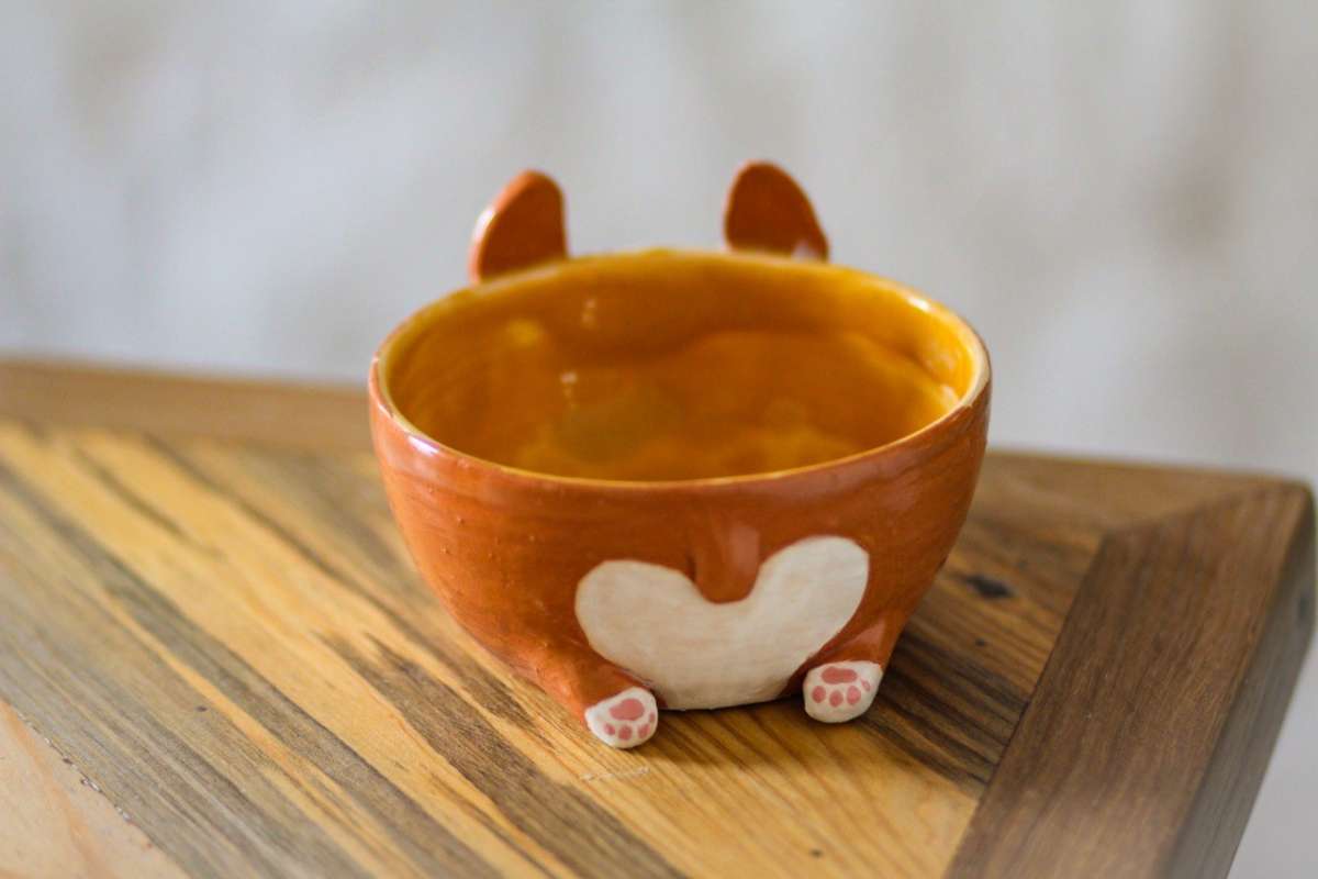 Ваш малыш выкрутит малютку-корги за гончарным кругом, а затем слепит мордочку и хвостик в технике ручной лепки и раскрасит ангобами этого щеночка :)