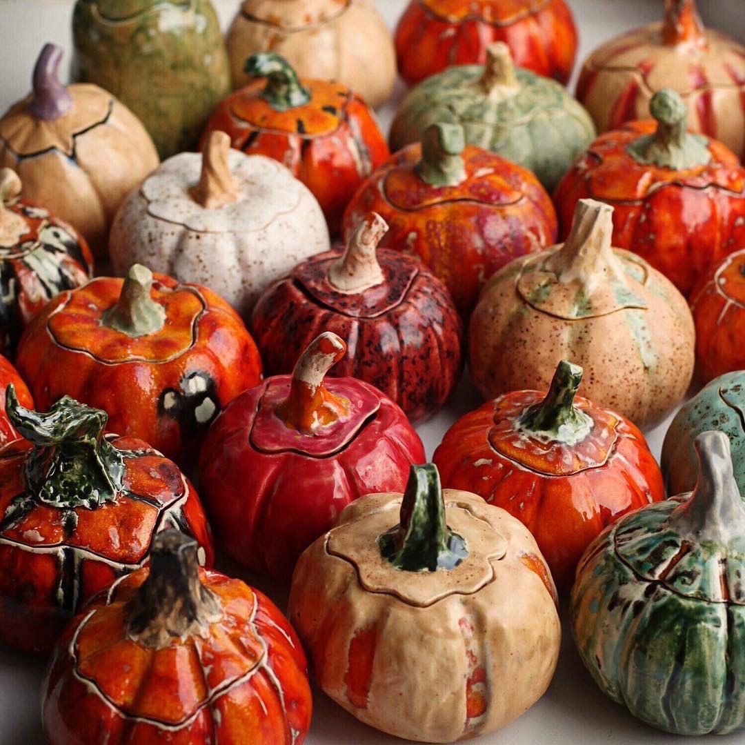Как можно использовать уютную тыковку? Прежде всего - как емкость для сахара, разных семечек, конфет или джема. Можно хранить в ней украшения, а можно не делать ей крышку и просто поставить на окно рядом с букетом сухоцветов. Огненные оранжевые глазури так красиво переливаются! А можно сделать тыкву вовсе не уютной, а жуткой и страшной! Вырезать подсвечник Джек и зажигать в нем огоньки под Хэллоуин!